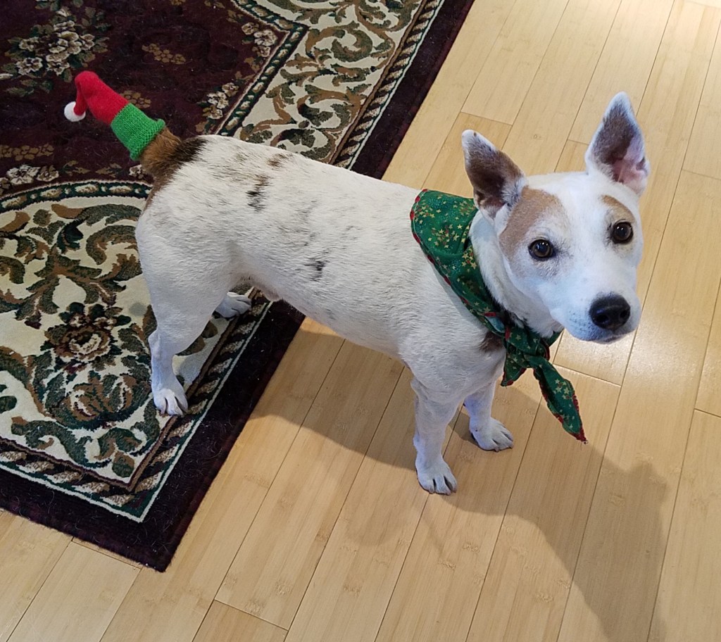 Jiver is all decked out and ready to go with his happy santa tail. (You can see Happy Santa Tail on You Tube or Instragram.)